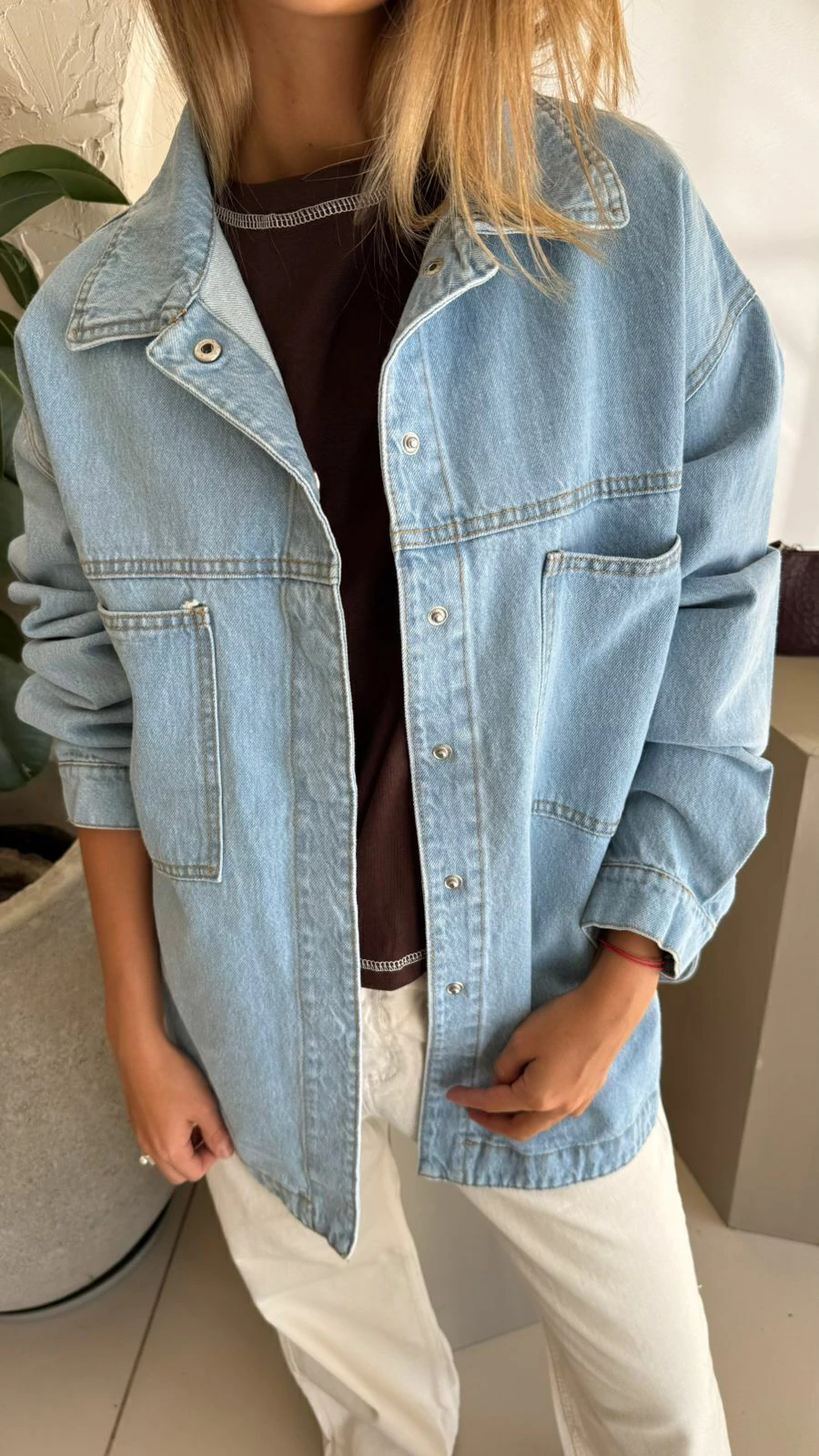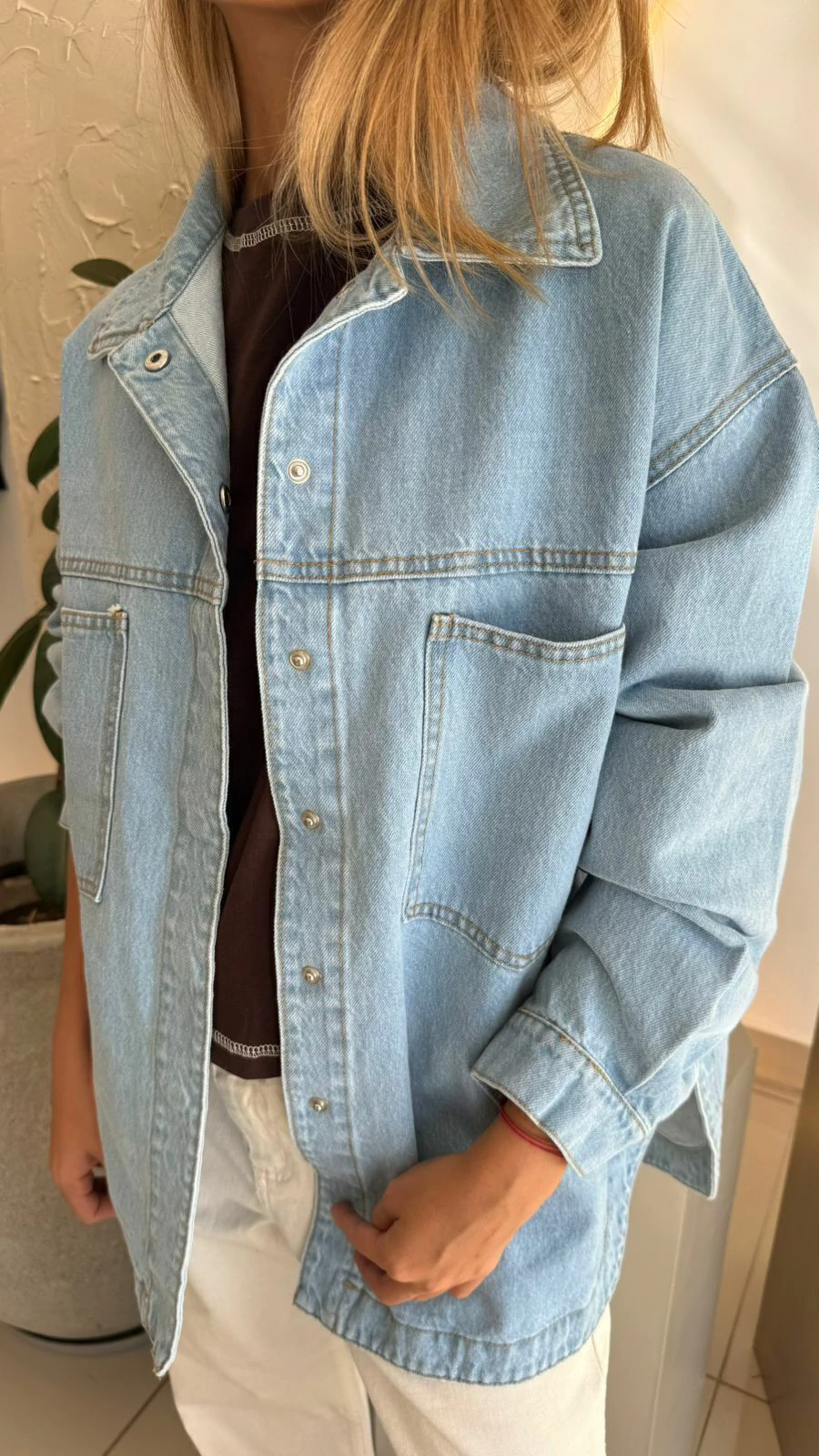 Campera de jean con dos bolsillos frontales y botones, una prenda esencial que combina estilo y durabilidad. Su corte clásico es atemporal y versátil, ideal para cualquier ocasión. Los dos bolsillos frontales y los botones le dan un toque funcional y distintivo, perfecto para armar looks tanto casuales como más arreglados.
