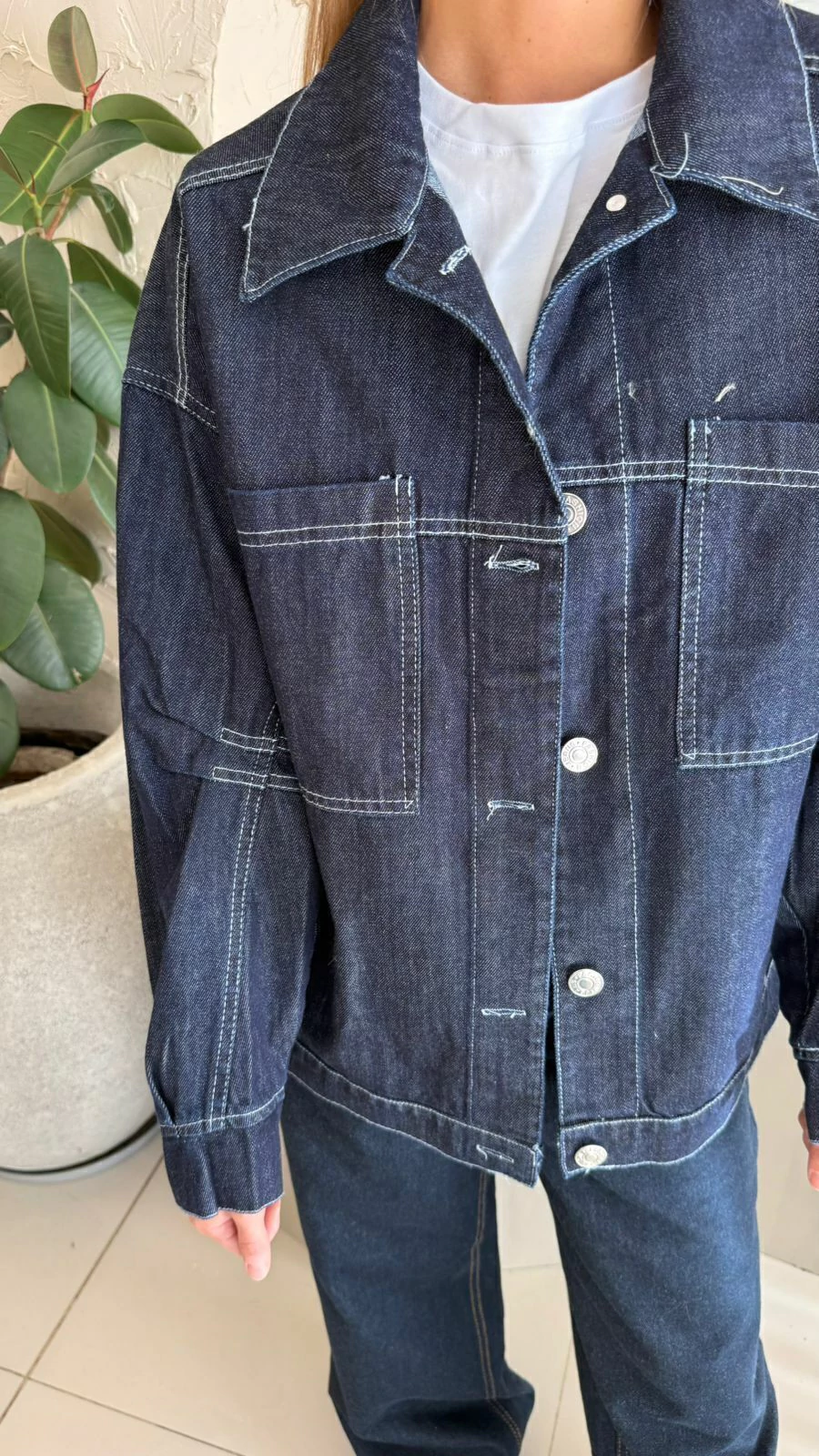 Campera de jean oscuro, un clásico atemporal que no puede faltar en tu guardarropa. Su tejido de jean resistente la convierte en una prenda versátil y duradera, ideal para usar en cualquier estación. El color oscuro le da un toque moderno y sofisticado, perfecto para combinar con todo tipo de prendas y crear looks que van desde lo casual hasta lo más arreglado.